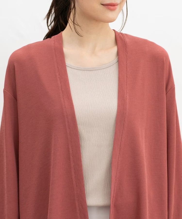 これからの季節にぴったりのカーディガンは、さまざまなブランドから良品が出ています。例えば、ニコアンドの「ポコポコポロカーディガン」は、涼しげでトレンド感のある素材感が魅力の一枚。名前の通りポコポコとした立体的な素材を使用しており、肌に張り付きにくく通気性も良好です。速乾性にも優れているため、暑い時期でもドライタッチで快適に着用できます。
