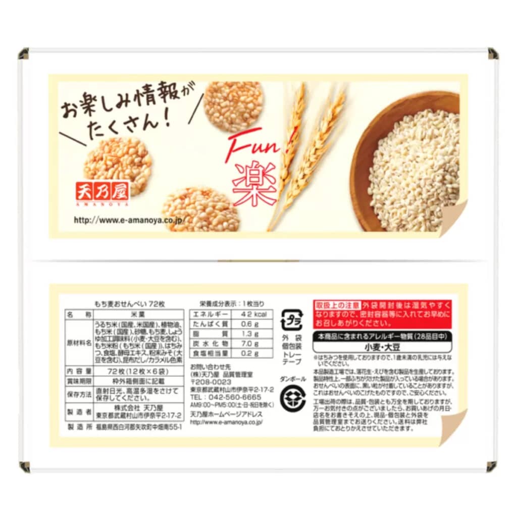 コストコで人気の「天乃屋 もち麦おせんべい 72枚入り」