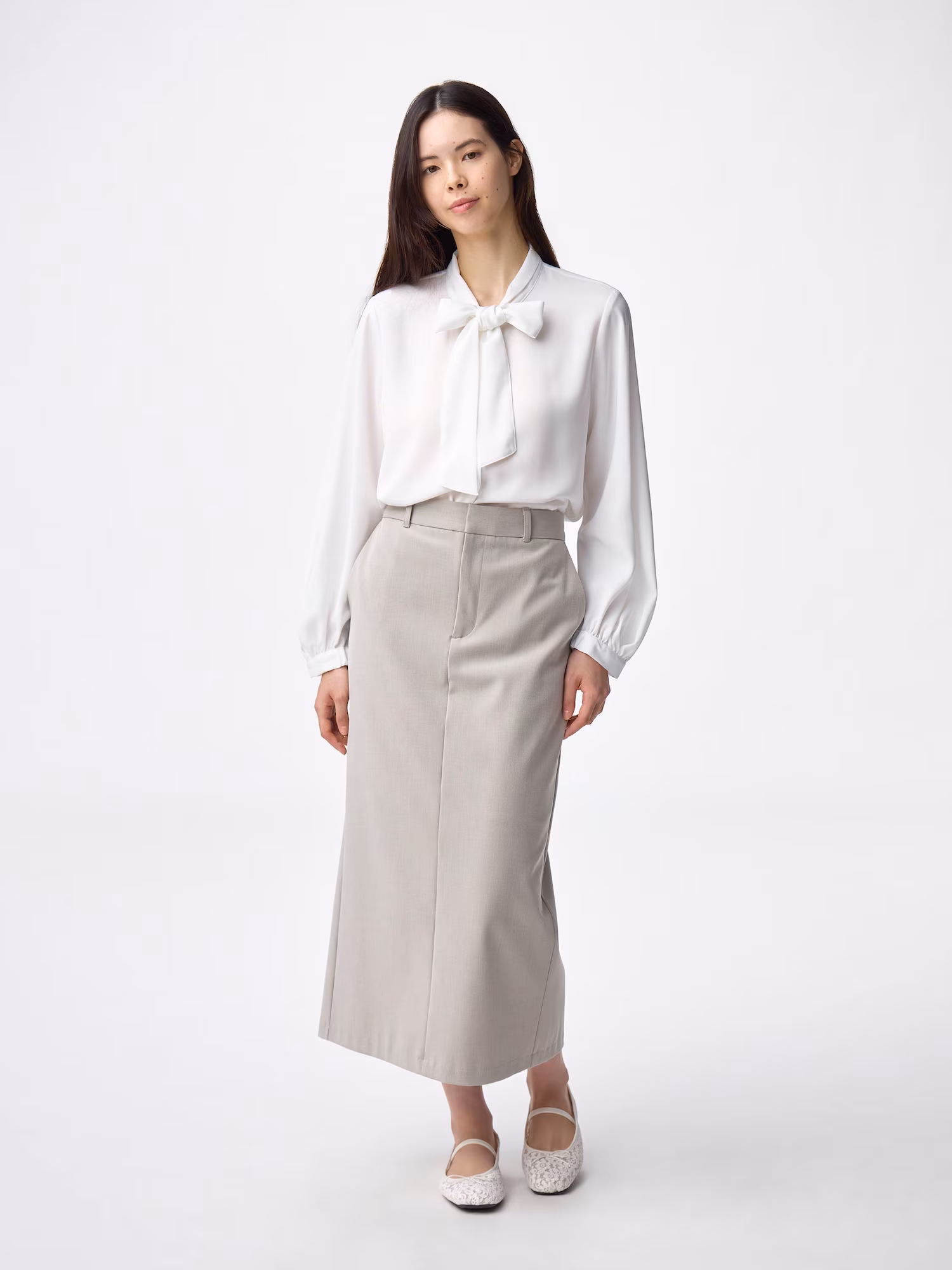 「シルエットが超かわいい!」 GUの“ボウタイデザインのブラウス”が人気 「上品でとろみがある生地と重量感」「きれいめだけど甘くなり過ぎない」