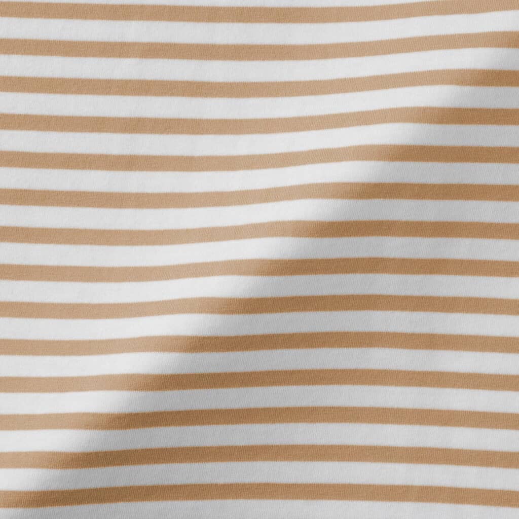 「婦人 天竺編みクルーネック半袖Tシャツ」(990円)は、コットンと再生ポリエステルを組み合わせた素材を用いた着まわしやすいベーシックなアイテム。着丈はアウトスタイル、インスタイルどちらにも対応できるバランスで、襟ぐりの幅など細部にも過度な装飾を排したミニマルな美しさがあります。総合的に、無印良品らしいシンプルさ、着心地のよさ、手軽さを兼ね備えた日常使い向けのTシャツとなっています。