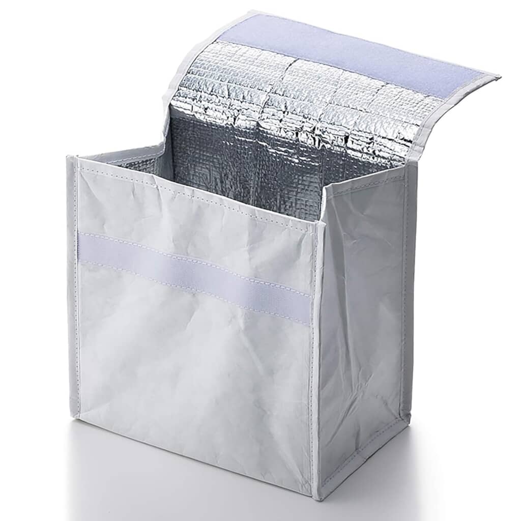 ディーンアンドデルーカの「ランチバッグ ホワイト」は、バッグインバッグできるインナーサイズのランチバッグ。毎日のお弁当やおやつを持ち歩く際、取っ手付きのバッグではかさばってしまいますが、同アイテムはバッグに入れて身軽に持ち運びできます。冷却効果はないため、冷却が必要なものを入れるときは、市販の保冷剤と一緒に使うのが良いとのこと。シンプルなディーンアンドデルーカのロゴに、しわ感のある素材がおしゃれなアイテムです。