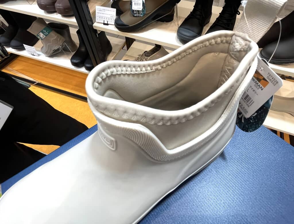 また最大の特徴は、脱ぎ履きのしやすさ。履き口まわりのサイドゴアは、足首上まであるため足当たりが柔らかくフィットします。これは担当者がユーザーからの「サイドゴアブーツの履き口が当たって痛い」という声を受けて改良したからだそう。ワークマンに限らず、著者自身これはサイドゴアブーツの難点だと思っていたので、うれしい改善ポイントです!