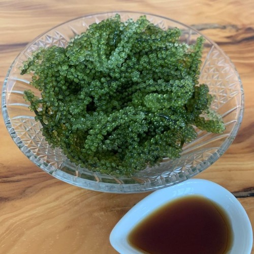 そんな海ぶどうはブドウのような見た目で、プチプチとした食感が特徴。カロリーが低くミネラルが豊富なため、健康や美容を気にしている人にも喜ばれそうです。付属のドレッシングに付けながらサラダとして食べたり、お酒のおつまみとしてもおいしく食べられます。