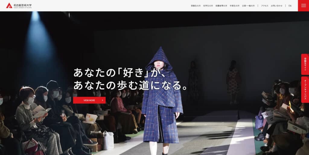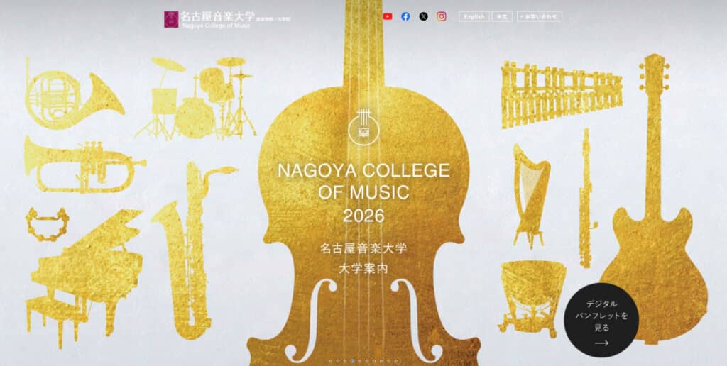 キャンパスは「東キャンパス」「西キャンパス」の2カ所に分かれており、充実した設備の中で専門領域について学び、創作活動に打ち込むことができるのが大きな特徴。名古屋駅からはいずれのキャンパスも名鉄犬山線利用で30分圏内と至近で、通学しやすい立地となっています。社会とのつながりも重視しており、産学官連携や展覧会、演奏会の件数・回数が多いことも特色です。