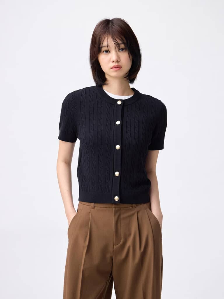 第2位:ケーブルメタルボタンカーディガン(半袖)
