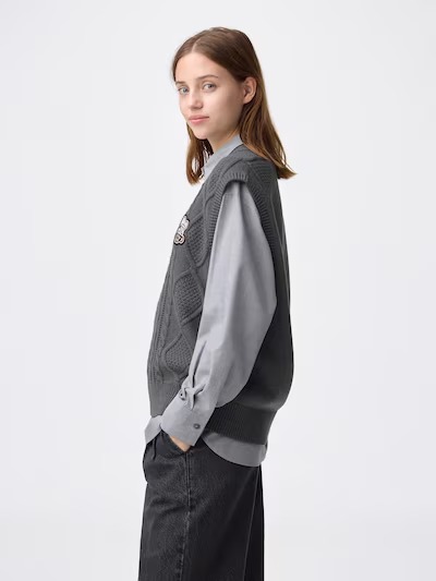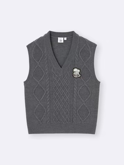 購入者からは、「意外と重ためで厚みがあります」「デザインもシンプルで着やすいし合わせやすいです!」「ゆったりシルエットなニットベスト」「着心地が良くてシンプルなのにキャラクターコラボ商品なのがいい」といった声が寄せられています。