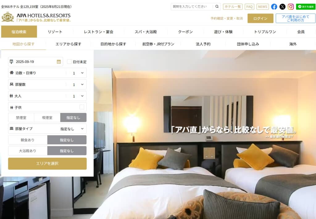 同率第1位の2つ目は「アパホテル」でした。アパグループが運営するビジネスホテルです。