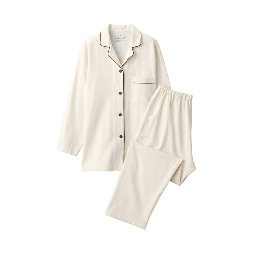 無印良品の「婦人 脇に縫い目のない フランネル長袖パジャマ」は、やわらかなフランネル素材を使用した綿100%の長袖パジャマ。2本撚りの糸に起毛加工を施すことで、ふんわりと暖かく仕上げているのが特徴です。両面起毛により肌ざわりがなめらかで、脇に縫い目がないため寝返りもしやすく快適。ゆったりとしたフィット感で、開襟としてもボタンを上まで留めても着られる2WAY仕様なのもうれしいポイントです。カラーは8種類、価格は税込み4990円で販売されています。