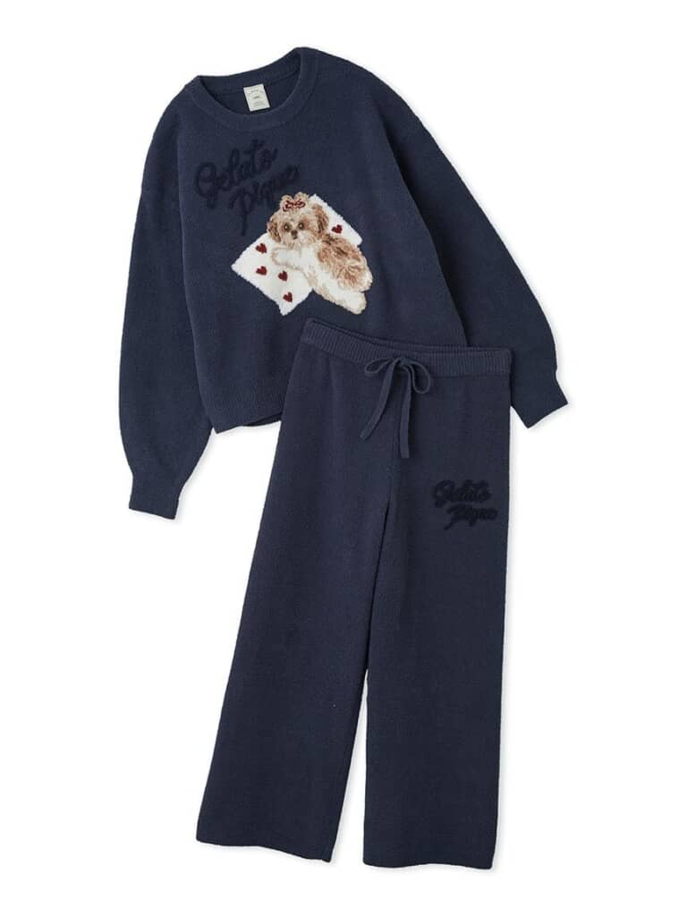 ジェラートピケの「【ONLINE限定】シーズージャガードプルオーバー&ベビモコロングパンツセット」は、お気に入りの枕に寄り添うシーズー犬のデザインが癒しを届けてくれる、オンライン限定のプルオーバー&ロングパンツセット。ふんわりとした風合いのジャガードニットに、立体感のあるロゴがアクセントになっています。シーズーがつけたリボンや、ボディカラーによって異なる枕の柄(オフホワイトとブルーはストライプ、ネイビーはハート)など、細部のこだわりも魅力。カラーは3種類、価格は税込み1万6610円で販売されています。
