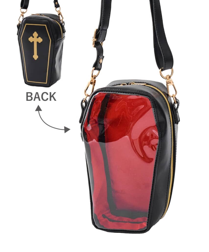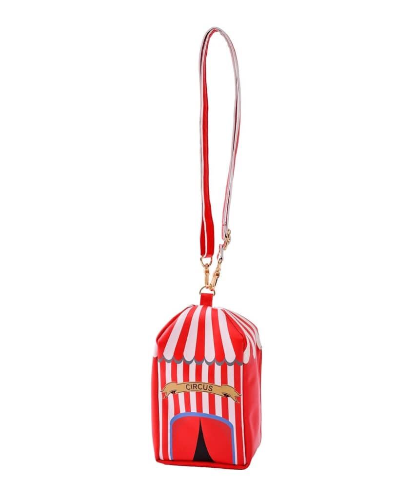 第1位は、「推しぬいポーチ/ハロウィン」(税込み:880円)でした。大好きな推しのぬいぐるみを入れて持ち運べる、ハロウィンデザインのかわいいポーチです。ショルダー紐は長さ調整が可能で、斜め掛けにしてライブやイベントにぴったり。もちろん普段のお出かけにも活躍します。ぬいぐるみだけでなく、アクリルスタンドなどの推し活グッズの収納にも便利で、ファン心をしっかりサポートしてくれるアイテム。ハロウィン気分を楽しみながら、推しといつでも一緒に過ごせます。デザインはサーカス小屋のようなレッドと、ドラキュラの棺桶のようなブラック、魔法書のようなブラウンをラインアップしています。