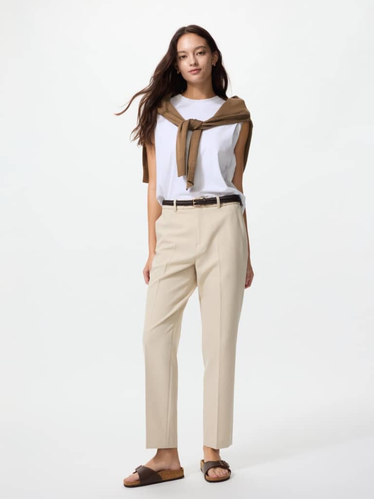 【ユニクロ】“クレープジャージーストレートパンツ”が値下げ! 「脚長でスタイル良く見える楽パンツ」「高見えする」