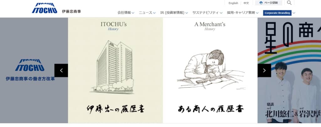 伊藤忠商事は「売り手よし・買い手よし・世間よし」という「三方よし」の精神を企業理念に掲げます。繊維、機械、金属、エネルギー、化学品、食料、住生活、情報、金融といった幅広いビジネスを展開しており、自分の持つ経験や技術を生かせる環境であることが、学生から人気を得ている要因かもしれませんね。