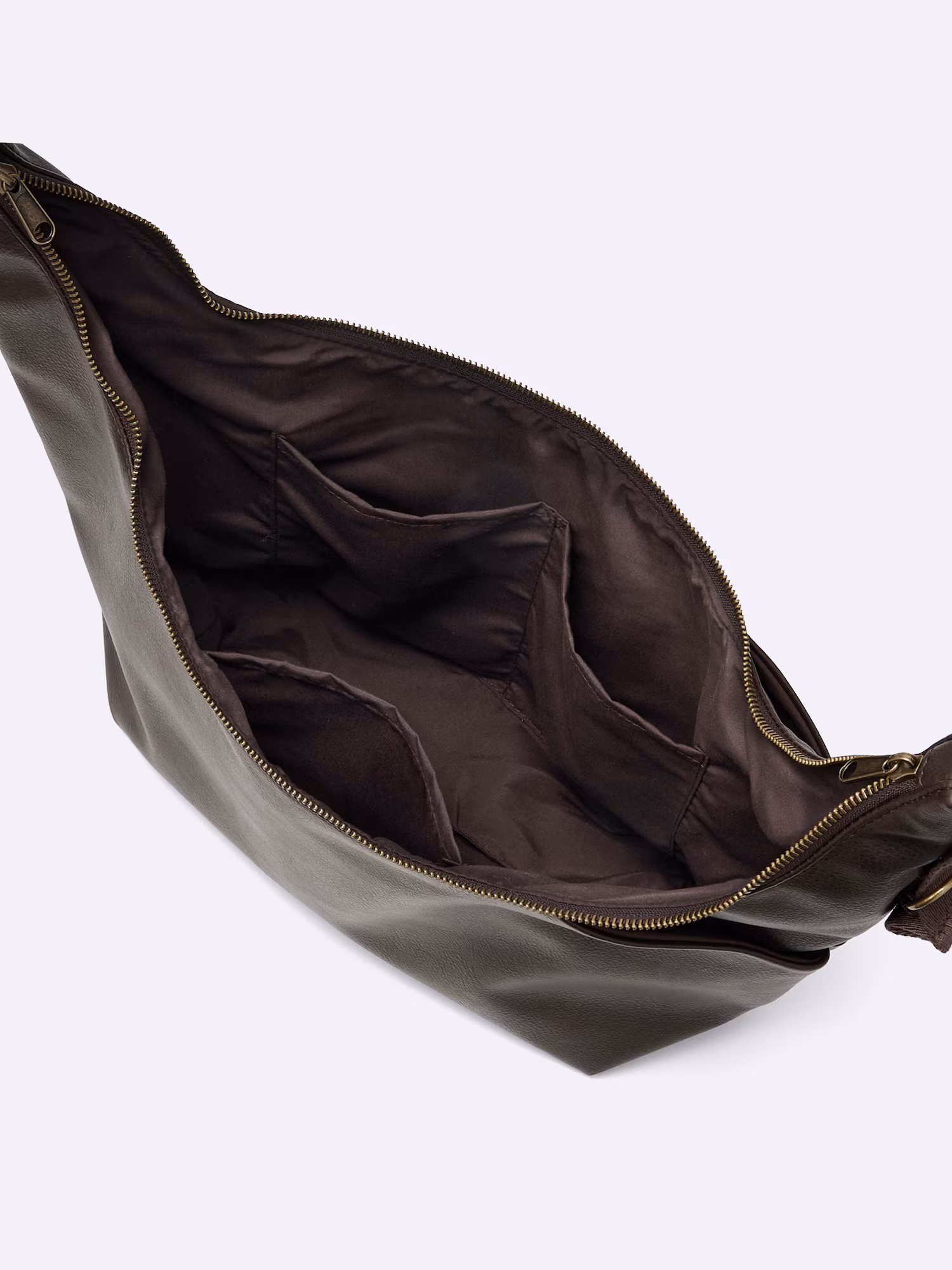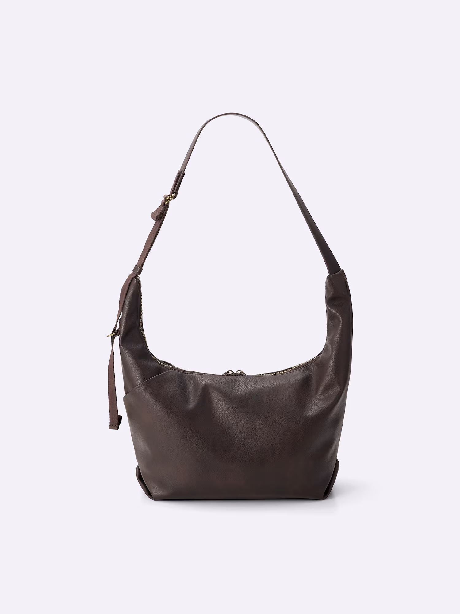 GUの「クロスボディバッグ」は、A4サイズまでのものが収まるミドルサイズのボディバッグ。外ポケット2個、内ポケット3個を備えており、開口はダブルファスナー仕様のワイド設計で中のものが取り出しやすく、日常で使う最小限の必需品を気軽に持ち運ぶことができます。また、表地にはケアしやすい合成皮革を使用し、ヴィンテージ風のカラー仕上げとエンボス加工による質の高い表面感もポイント。ショルダーベルトを着用したままワンアクションで長さを調節できるのも便利ですね。