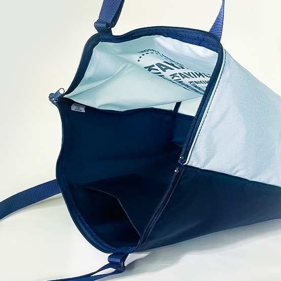 そんな紀ノ国屋の羽田空港限定「アニバーサリーバッグ サックス×ネイビー」は、紀ノ国屋×羽田空港のコラボレーションによる限定アイテム。片面ずつ異なるカラーが楽しめるオリジナル配色で、空港限定ならではの特別感を演出してくれるトートバッグです。バッグのサイズは、タテ37センチ×ヨコ33センチ×マチ15センチとしっかり収納できる大きさで、A4サイズのファイルやタブレット、ペットボトルなども無理なく入るのがポイント。また、持ち手の長さが調節可能なため、肩掛け・手提げのどちらにも対応できる使いやすさが魅力です。メインコンパートメントにはジッパー付きで、中身が飛び出す心配もありません。電車内や混雑する場所でも安心して使えそうです。価格は税込み3850円で販売されています。