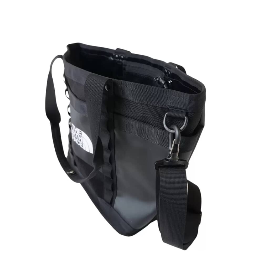 「ザ・ノース・フェイス エクスプローラー ユーティリティー トートバッグ」は、耐久性に優れたベースキャンプ生地を使用した、トートとしてもショルダーとしても使える便利なバッグ。広めのマチがあり、ノートパソコンもすっきり収まる収納力が魅力です。またメイン部分がガバっと開くので、荷物の出し入れがしやすい設計なのもうれしいポイント。メインポケット内にはペンやUSBなどの小物を整理できる仕分けポケットも付いており、実用性も抜群です。通勤・通学はもちろん、普段使いにもぴったりな頼れるアイテムで、全面黒地に白のブランドロゴが映えるシンプルなデザインも特徴です。