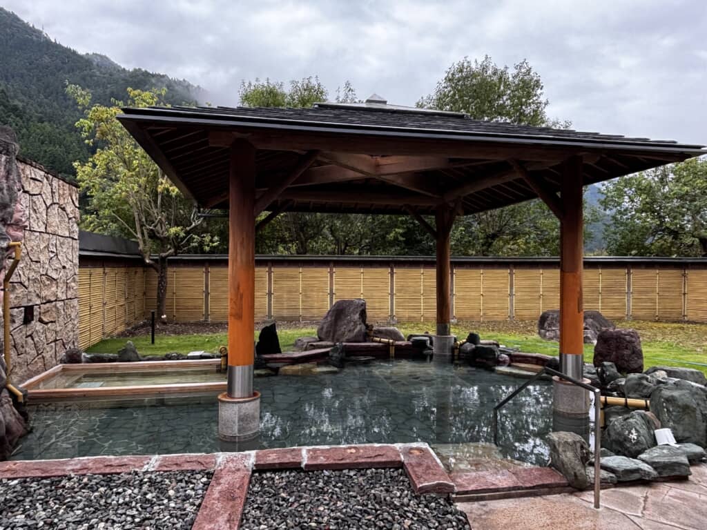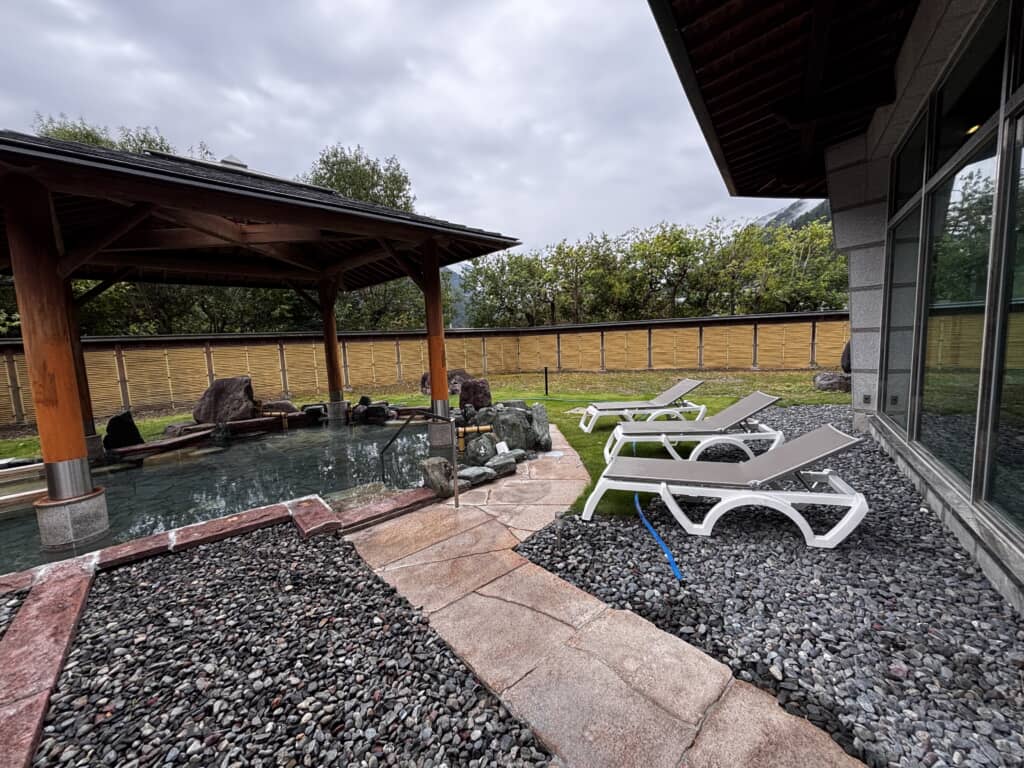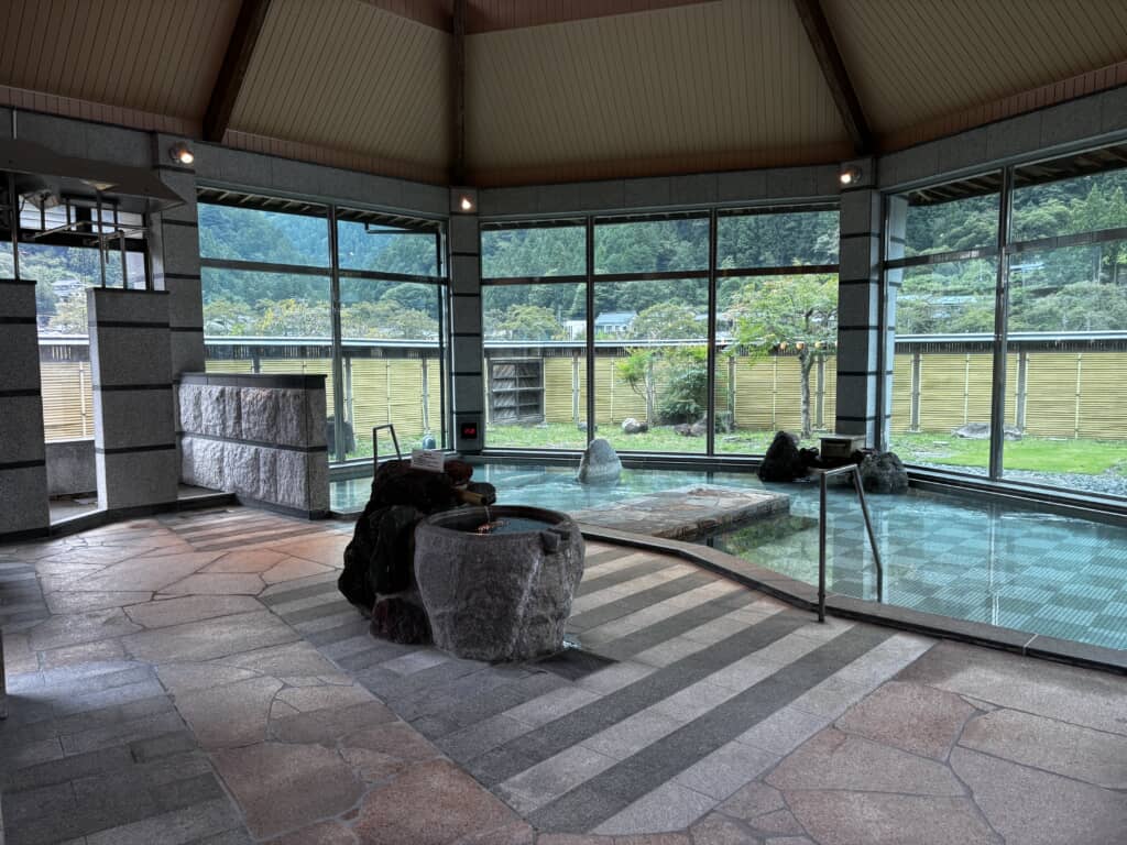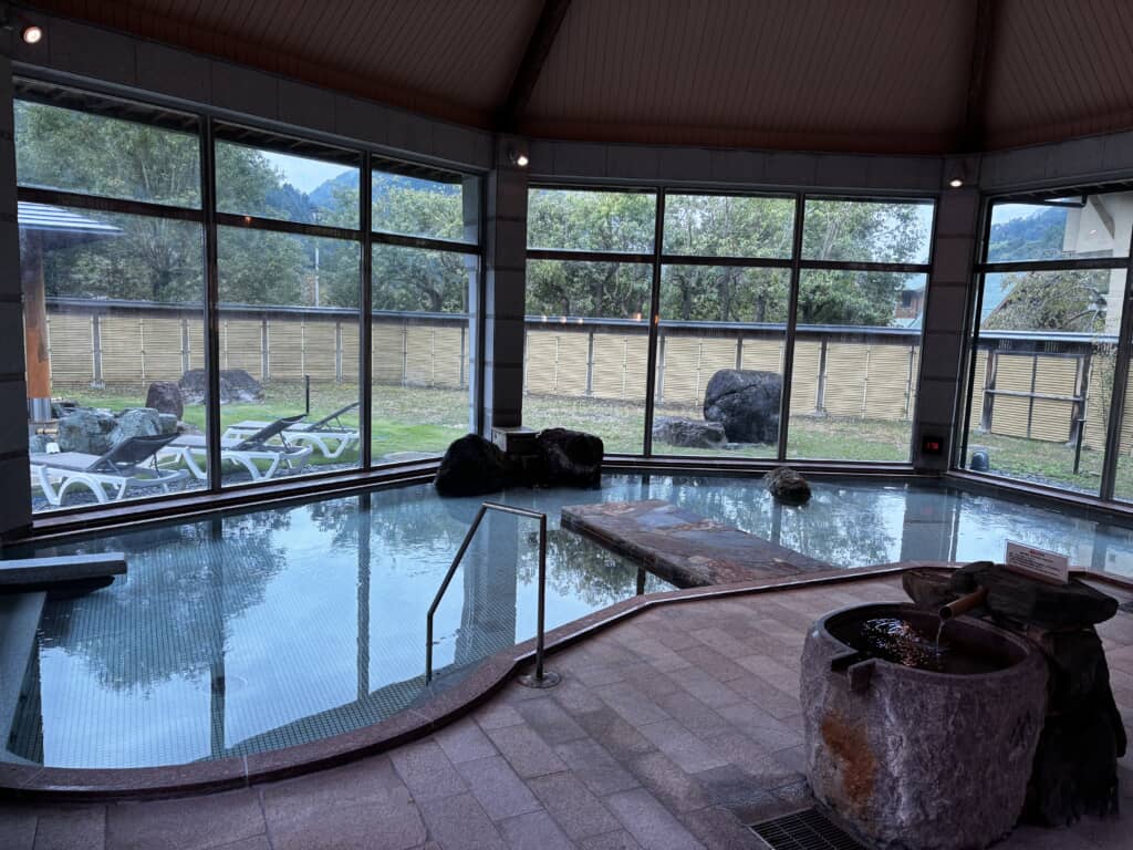 施設の中核となる温泉「かぐらの湯」は、全国でも珍しい含硫黄・ナトリウム塩化物温泉です。汲み上げポンプの落下事故等の影響により2021年11月29日に休業してしまいましたが、クラウドファンディングを募り再オープンできました。内装は浴槽を少し狭めて以前より通路を広くし、利用者の少ない温泉の真ん中には石などをおいて湯量をさげるなどの工夫も見られました。露天風呂からは雄大な自然を感じられ、サウナも完備で大自然の中で整えられるのは最高です。