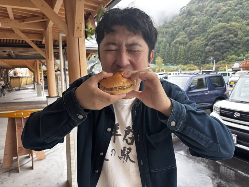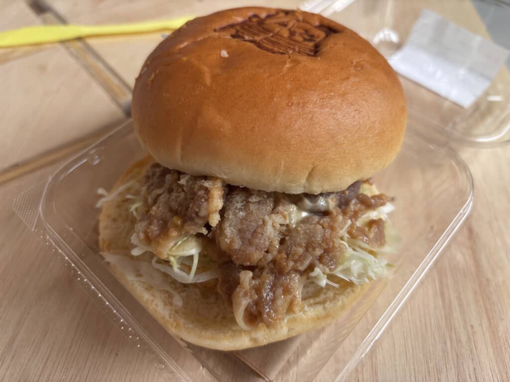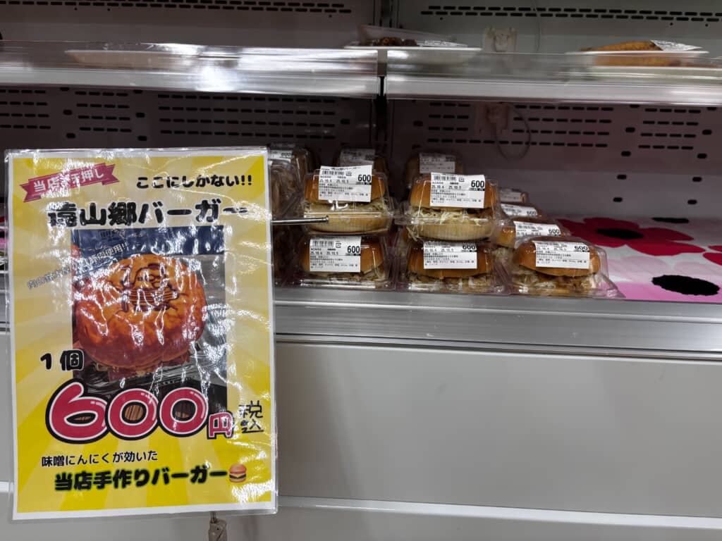 こちらのバーガーは道の駅に併設のスーパー「ヨシマルヤストアー」がオリジナル商品として販売しているもの。地元精肉店「肉のスズキヤ」の豚肉の切り落としを使用し、味噌とニンニクで味付けされています 。