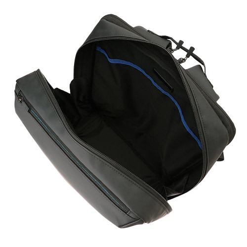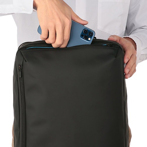内部はフルオープン仕様で、荷物の出し入れがスムーズ。16インチ対応のノートPCコンパートメントも備え、出張やリモートワークにもぴったりです。外装にははっ水加工が施されており、突然の雨にも安心。サイドファスナーポケットの内部には、前持ちした際にも物を取り出しやすいよう斜めに設計されたオープンポケットを配置。キーフック付きで鍵の収納にも便利です。