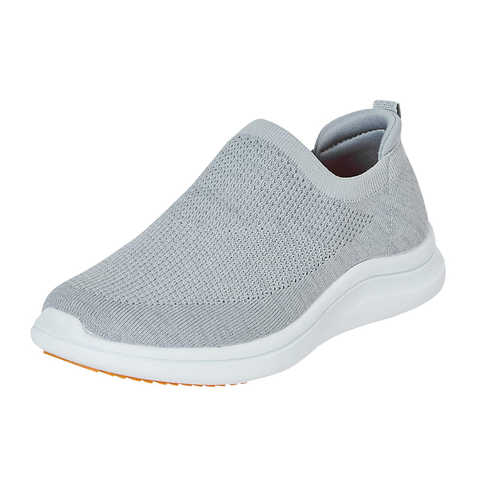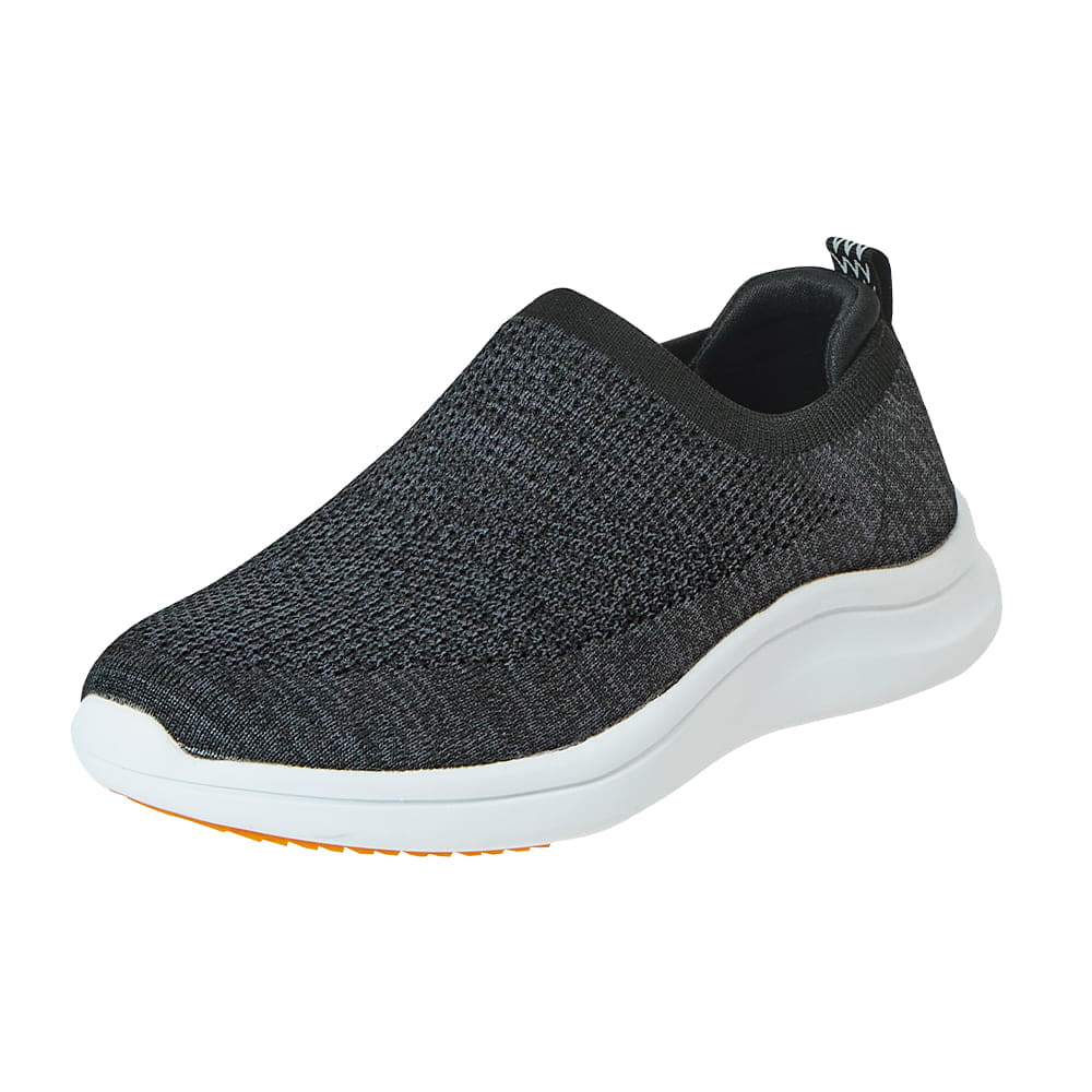 ワークマンの「ファイングリップレディース」(1900円)は、女性向けに設計された滑りにくさ重視のスリッポン。ニット素材のやわらかさとラフに履ける設計を両立させた点が大きな特徴です。耐油底(油に強い底)や耐滑底、さらには反射材も付属しているため安心感があります。サイズ展開は女性足の一般的なレンジに合わせ、S(22.0〜22.5cm)、M(23.0〜23.5cm)、L(24.0〜24.5cm)という3サイズ構成となっています。