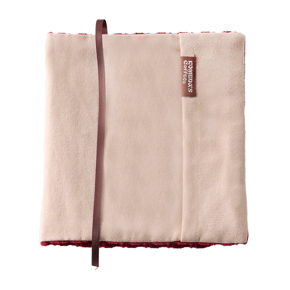 洗濯やアイロン、クリーニングは不可のため、汚れは固く絞ったタオルで軽く拭き取り、湿りや摩擦による色移りには注意が必要です。価格は税込1500円で、コメダでの読書時間はもちろん、それ以外の場所でも“あのソファーのぬくもり”を持ち歩ける一品です。