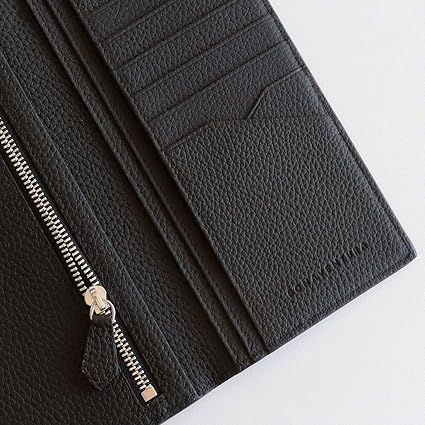縦18.5センチ・横9.2センチ・マチ1.2センチと薄さに驚きますが、収納力は文句なし。9つのカードポケット・ファスナータイプの小銭入れ・出し入れしやすい札入れと必要なものをしっかりしまうことができます。小銭入れにはマチがありスペースを広めに作られているので、たくさん入れても膨らみにくいのがうれしいポイント。スーツのポケットやバッグのちょっとしたスペースに収まるサイズ感です。