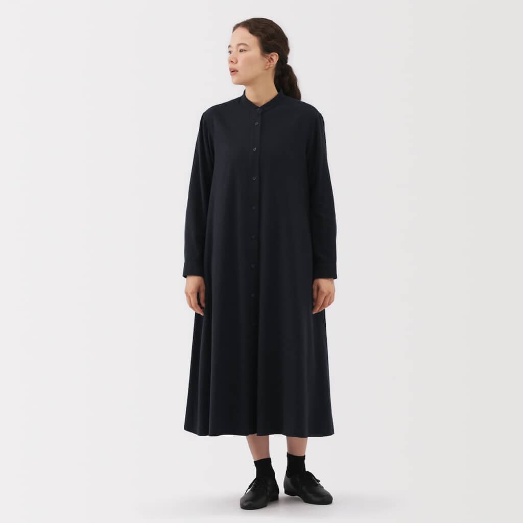 無印良品の「フランネルワンピース」が、着心地が良くて暖かく、これからの季節にぴったりだと人気を集めています。