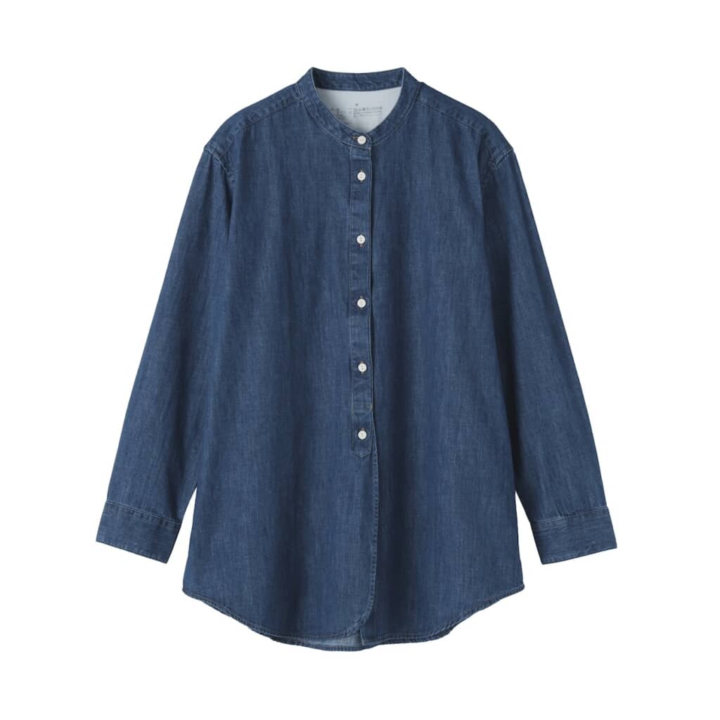 第15位:婦人 洗いざらし デニムスタンドカラー長袖ロングシャツ