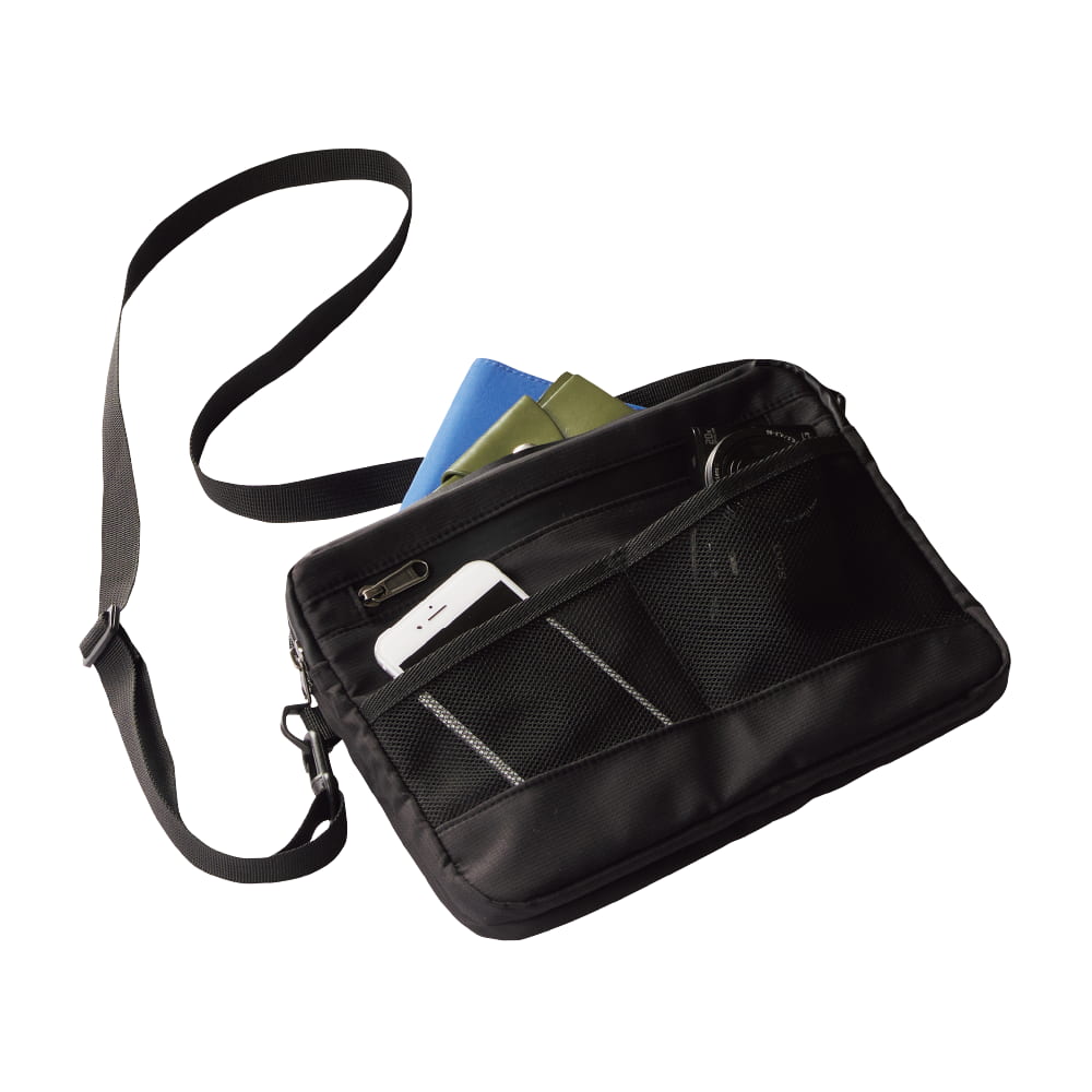 近所へのお出かけ時はもちろん、旅行や観光などの際にスマホや財布を入れるサブバッグとしても活躍してくれそうです。前面にはダブルファスナー仕様のポケットがあり、カードポケットやペンループを内蔵しているため、財布代わりにも使用可能。ショルダーベルトは取り外しできるため、メインバッグの中にポーチとして収納することもできます。​​サイズは縦約19×横26×幅4センチ、容量は2リットルで、税込1500円と安価なのも魅力です。