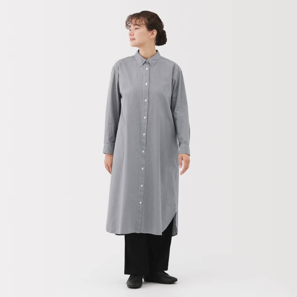 無印良品の「婦人 洗いざらし ブロード長袖シャツワンピース」が、オーガニックコットンを使用したやわらかな風合いが魅力のシャツワンピースです。微起毛素材ならではのぬくもりがあり、秋冬の装いにも取り入れやすい一枚です。