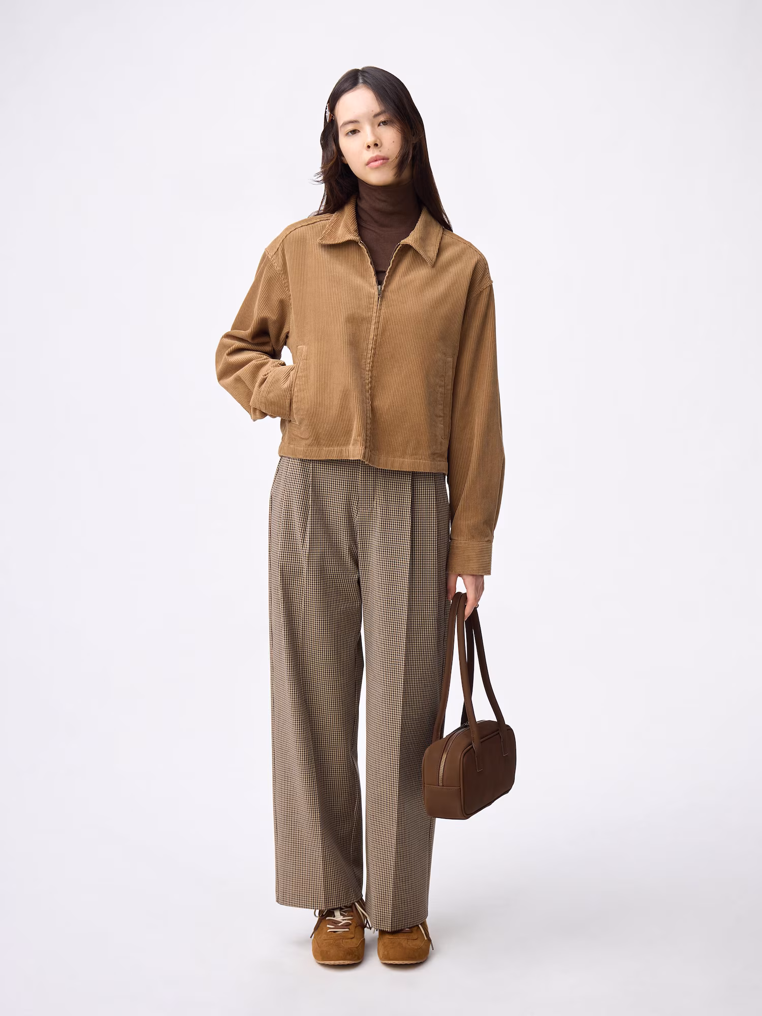 GUから販売されている「コーデュロイジップシャツジャケット+E」が、丈感がちょうどよくアウターとして使いやすいと好評です。