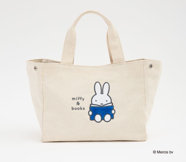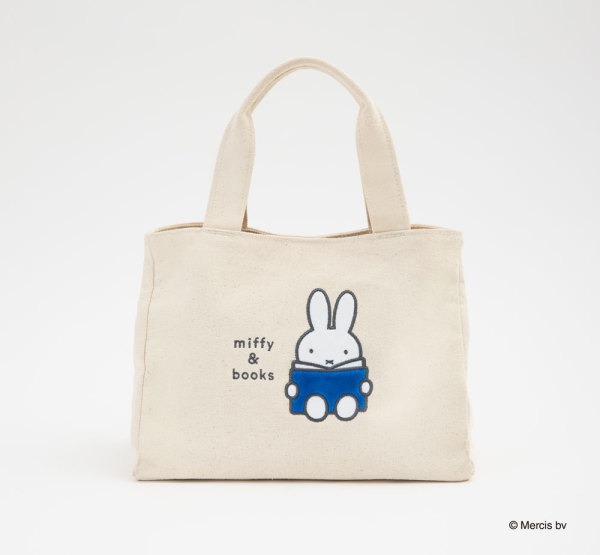 なかでも、「miffy&books サイドボタンミニトート」は、ちょっとしたお出かけにぴったりのアイテム。生成りの生地には読書をするミッフィーが刺しゅうされており、裏側には紀伊國屋のロゴが。内側に2つのポケット付きなので小物を整理するのに便利で、サイドボタンを留めることでサイズ調整も可能です。底板付きで、型崩れを防いでくれるのもうれしいポイント。幅約26×高さ20×奥行14センチと小ぶりで使いやすいサイズで、税込2750円で販売されています。