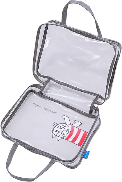 旅行のときはアクリルバッグにまとめて入れておけば、場所をとらず持ち歩きが簡単。小物を入れたり、バッグの中を整理したりと別々に使えるのも便利ですね。ファスナーには、ベイビーマイキーをモチーフにしたタグ付きで開け閉めがスムーズ。口ががばっと大きく開き、出し入れしやすい仕様になっています。