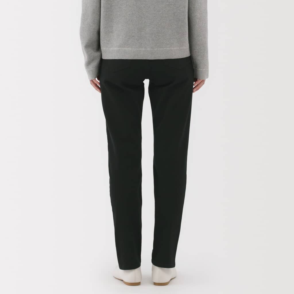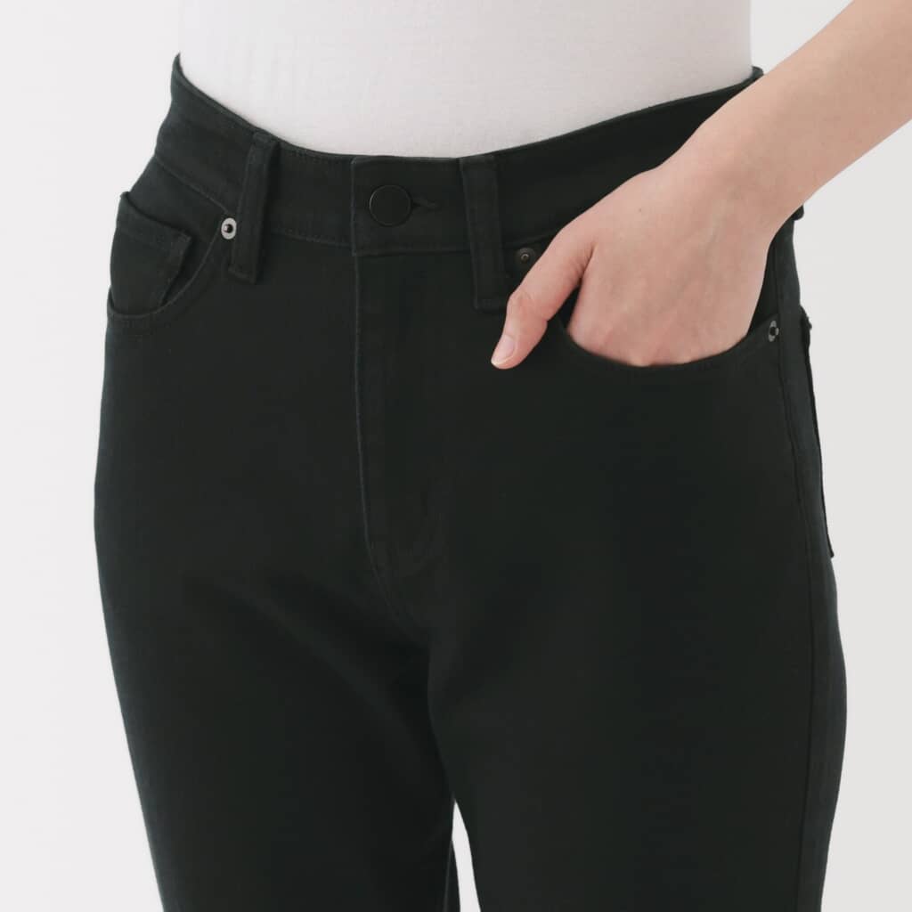 無印良品から発売されているストレッチ素材で着られる「婦人 ストレッチデニムスリムストレートパンツ 黒」が履き心地が良いと人気です。