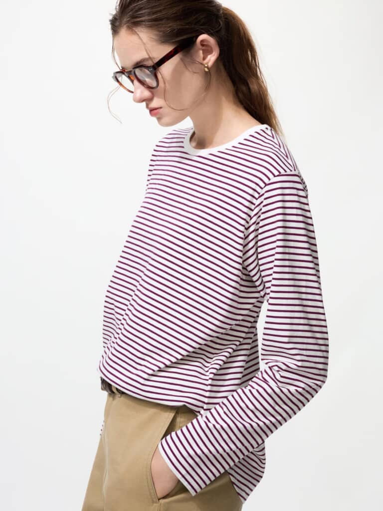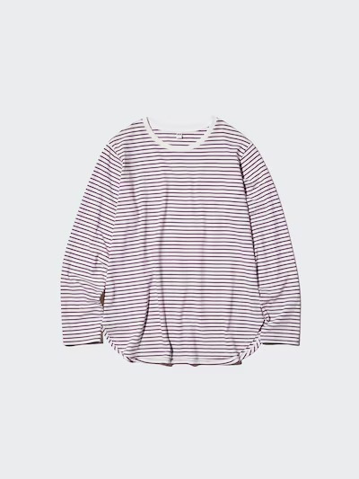 【ユニクロ】“ソフトコットンラウンドヘムT”が人気! 「珍しいパープルがかわいい」「ボーダーが細くて合わせやすい」