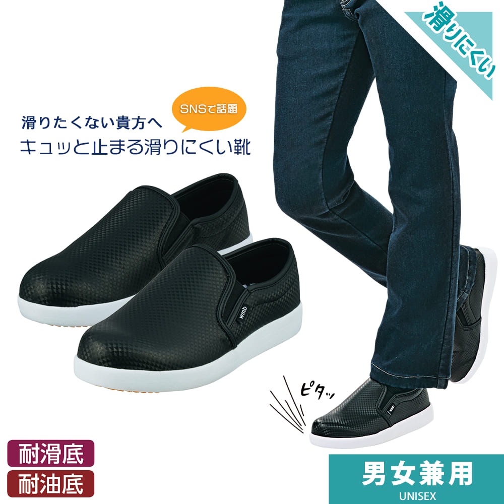 ワークマンの「ファイングリップシューズ」(2500円)は、滑りにくさにこだわったシューズ。プロも認める高い滑りにくさで、水回りなど滑りやすい環境でも安心して使用できます。ゆったりとした設計に加え、スリッポンタイプで脱ぎ履きがしやすいのも魅力。さらに、耐滑底と耐油底を採用しており、快適さと安全性を両立しています。