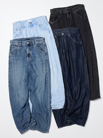 ユニクロから販売されている「バギーカーブジーンズ」が、履きやすい形、サイズ感で人気です。レーザー加工によるエイジドウォッシュもこなれ感が出ると好評です。