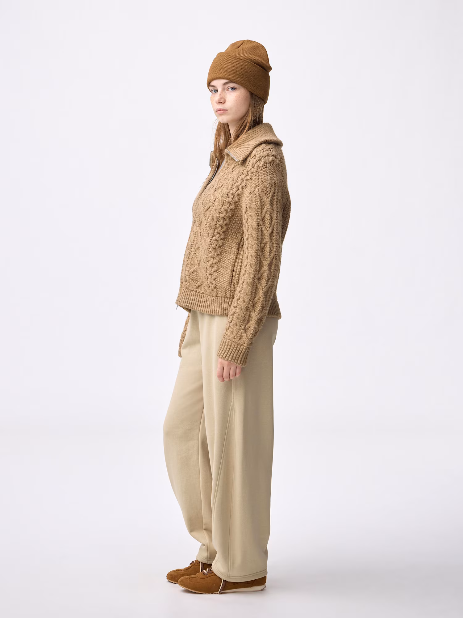 無印良品の「婦人 裏毛スウェットワイドパンツ」は、程よい厚みと柔らかな着心地が魅力のスウェット素材を使ったアイテムです。オーガニックコットンの綿とポリエステルの混紡によるベーシックな裏毛生地で、ロングシーズン活躍します。デザインは太すぎない程よいワイドシルエットで、さまざまなトップスとコーディネートしやすいのもうれしいポイント。裾を絞らない仕様により、スウェット素材ながらラフすぎず日常使いに取り入れやすい仕上がりになっています。