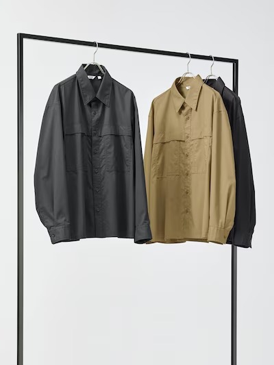 ユニクロの「ユーティリティオーバーサイズシャツ」は、トレッキングシャツやフィッシングシャツの要素を取り入れたオーバーサイズシャツ。ハリとコシのあるコットンナイロンツイル素材を使用し、羽織りとしても活躍します。フロントはヨークフラップ仕様でポケットから物が落ちにくく、背中にはベンチレーション構造を採用しているので、熱がこもりにくく快適。また2枚袖仕様と裾のスリットで動きやすさにも配慮されているので、アウトドアシーンでも活躍してくれます。カラーは08 DARK GRAY・09 BLACKの2種類、価格は3990円で販売されています。