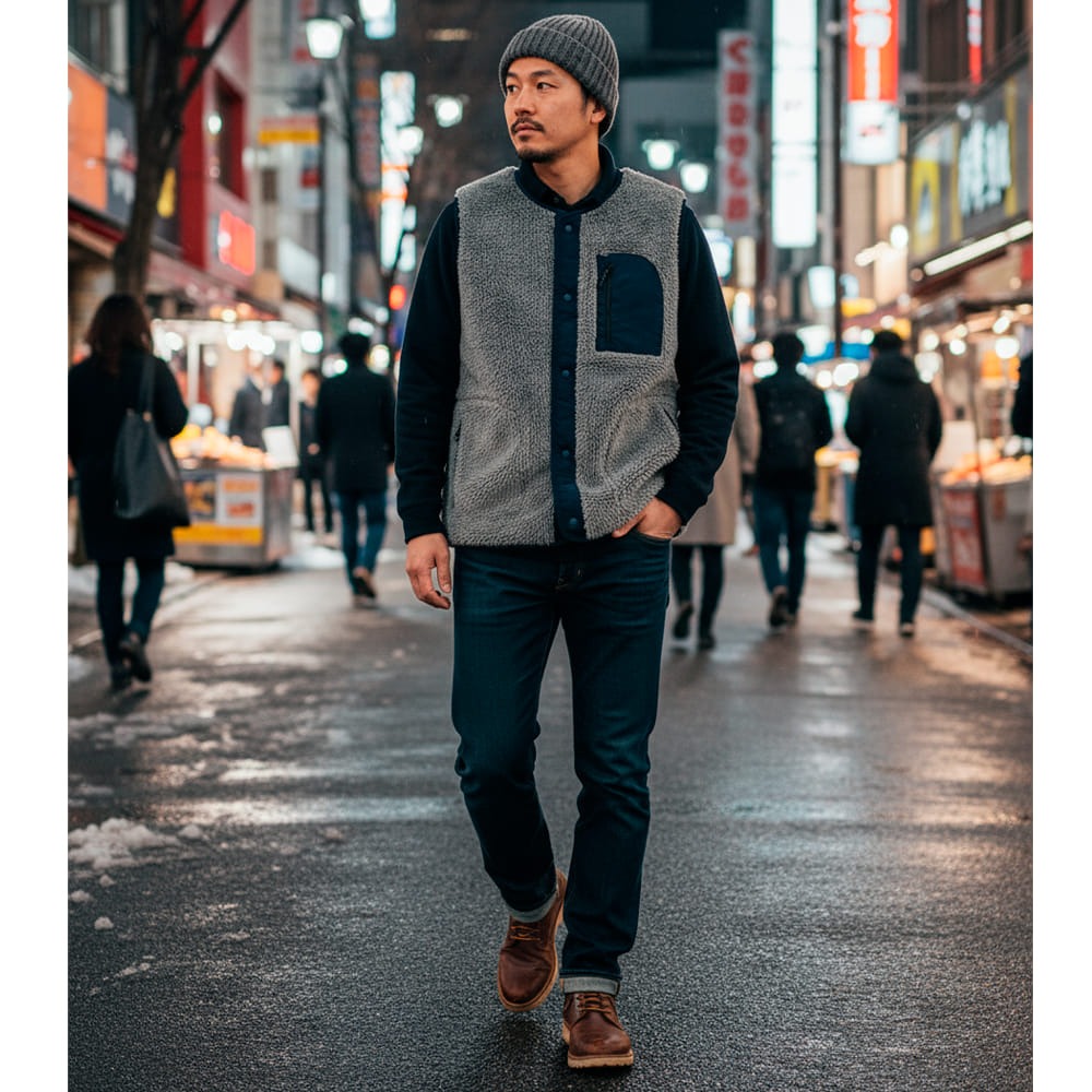 本記事では、タイミングによっては売り切れていることもあるという「ストレッチフリースノーカラーベスト」について紹介します。