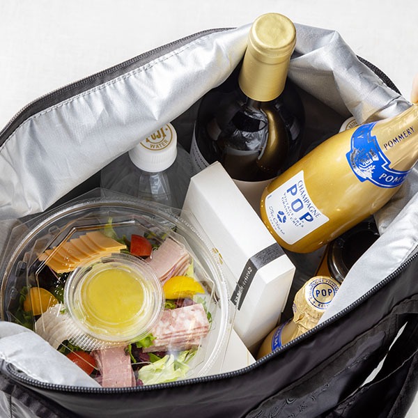 そんなThe Okura Tokyoのエコバッグは、使いやすさはもちろん、さまざまなこだわりを盛り込んだオリジナルエコバッグです。ワインを立てたまま入れられるほどの大容量で、保温・保冷機能も備えています。ファスナー付きのため荷物が外に飛び出すこともありません。持ち手は幅広のため肩への負担がかかりにくく、折りたたんでコンパクトに収納できるのもポイントです。
