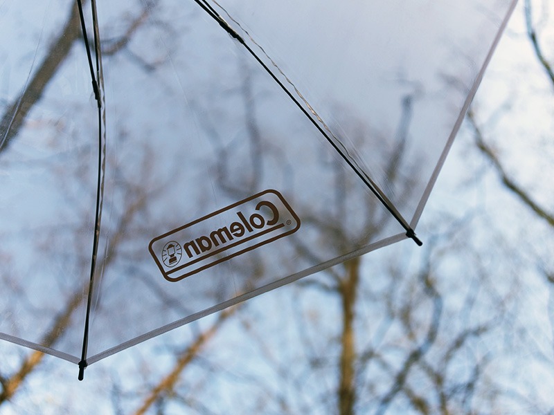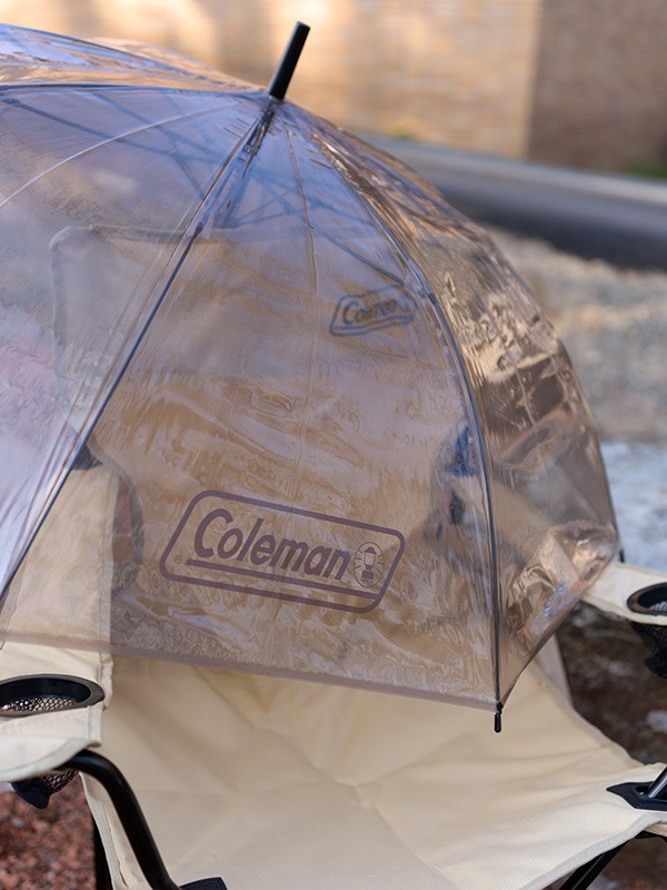 ビニール部分はやや茶色にスモークがかった透明素材で、「Coleman」ロゴがワンポイントとして入るシンプルなデザイン。親骨65センチとゆとりのあるサイズ感で、雨からしっかり身体を守ってくれます。価格は税込1480円、最新の在庫情報は店頭でご確認ください。