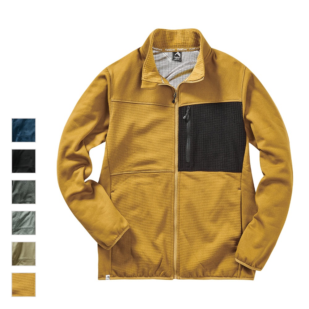 「ブロックフリース裏アルミジャケット」は、定番のブロックフリースを効果的に配置した軽防寒アウターです。背中裏側には遠赤外線を放射するアルミプリントを採用し、体熱を反射して効率よく保温。生地は2wayストレッチで動きやすく、タウンユースの着回しから現場作業、スポーツの移動時まで活躍してくれるオールマイティなジャケットです。左胸にはジッパー付きポケットを装備し、スマホや鍵の落下を抑えてくれます。
