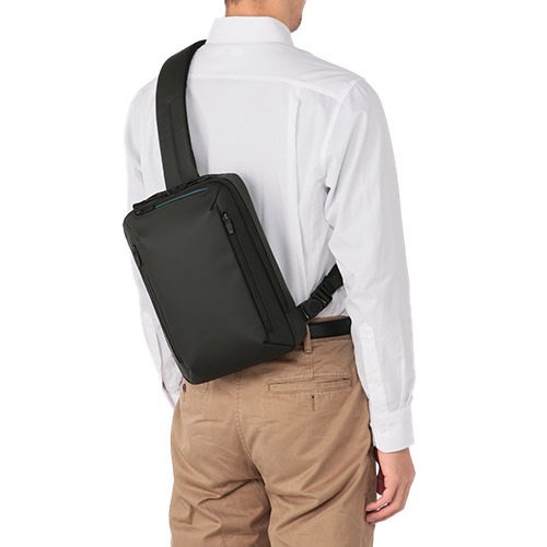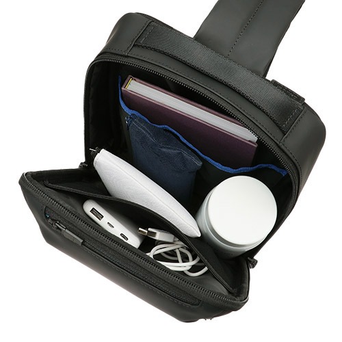 ベルト部分には、アートフィアー社が独自に開発した「ZeRoGfit」ショルダーベルトを採用。3種類の異なる芯材を内蔵した構造により、ベルトが肩に広くフィットして荷重を分散。さらに、人の体温によって形状が変化する素材「HUMOFIT」を内蔵しているため、装着時に肩のラインに自然に沿うようフィットし、荷物の重さを感じにくくします。ショルダーベルトはワンタッチで左右の付け替えが可能で、右掛け・左掛けどちらにも対応。シーンや好みに合わせて使い分けられるのも便利です。