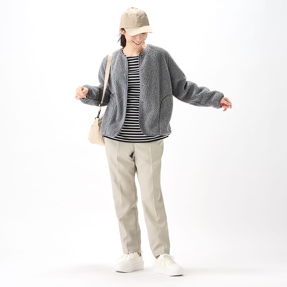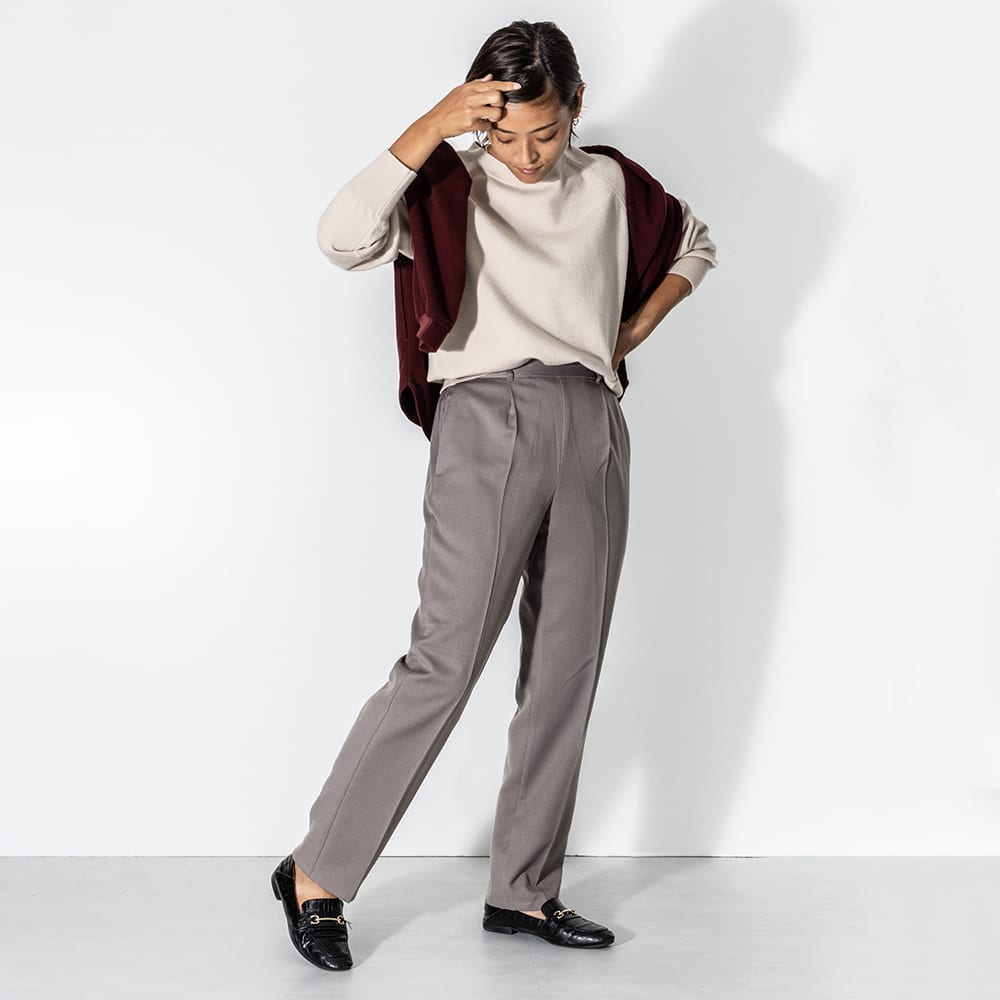 そんなワークマンの「レディースソロテックス(R)使用レイウォームテーパードパンツ」(2300円円)は、冬〜早春の寒さに対応しつつきれいめシルエットを実現できる起毛裏地付きボトムス。裾には隠れたリブ仕様がセットされていて、風の侵入を防ぎつつ足元すっきりと見せられる工夫がなされています。ブラック、グレージュ、ライトベージュといった、普段使いしやすいカラーがラインナップされています。