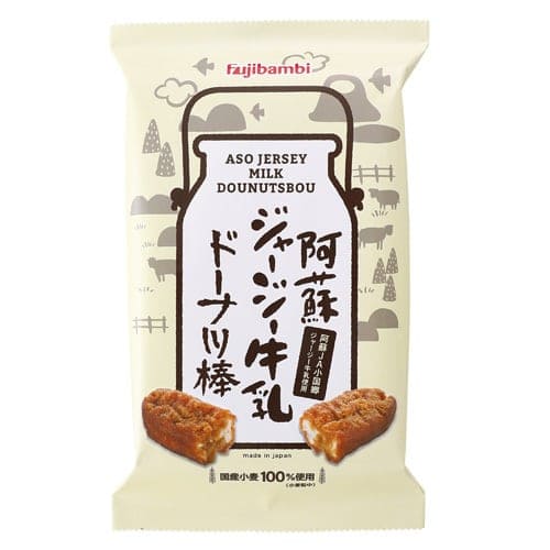 1948年に兵庫県姫路市で創業された「フジバンビ」。「日本生まれのドーナツ」として開発された「黒糖ドーナツ棒」の開発・販売を開始した1986年に熊本市へ移転し、現在に至っています。「阿蘇ジャージー牛乳ドーナツ棒」には、阿蘇郡小国町で生産された小国ジャージー牛乳を使用。濃厚な味わいが特徴の牛乳をたっぷりと使い、コクと甘さを味わえる一品です。牛乳の他にも国内産小麦粉を100%使用し、安全でおいしいお菓子づくりに努めています。また、賞味期限が90日と比較的長く、常温での保存が可能なことから、お土産品として気軽に購入できる商品といえるでしょう。