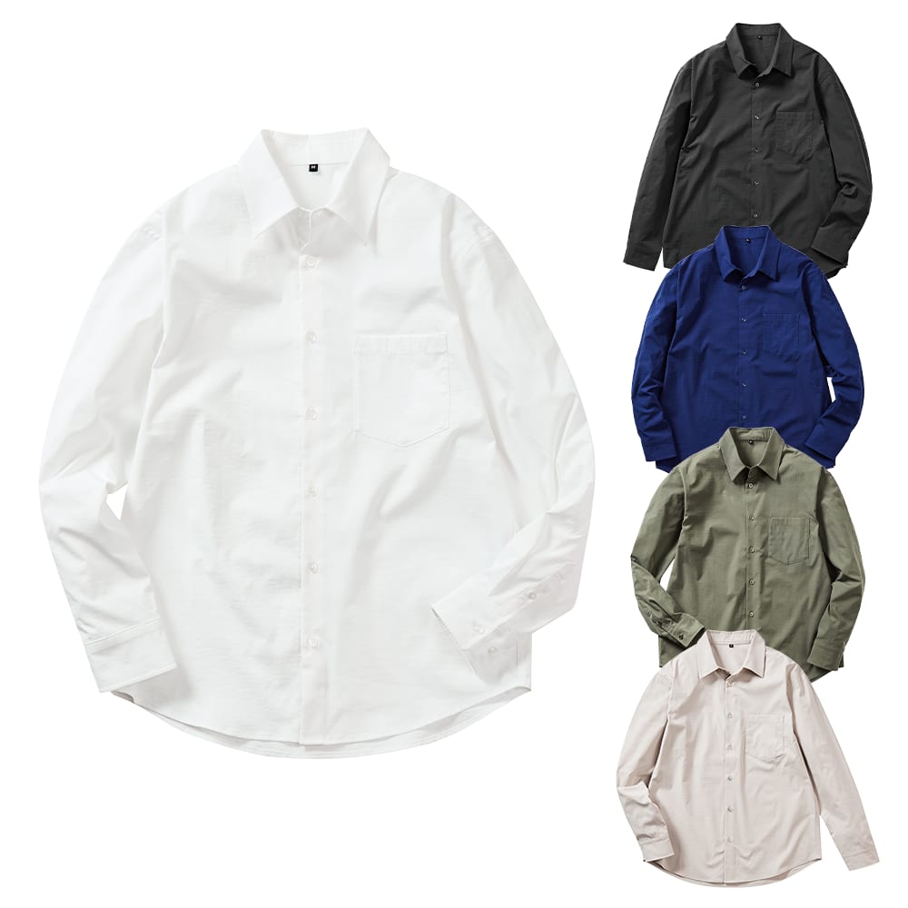 価格は税込1990円とリーズナブルながら、XS~XXLまでの6サイズと白・黒・ブルー・ストライプなど豊富な10色のカラーバリエーションをラインアップ。透け感や伸縮性が少ない分、インナーと合わせれば春秋の羽織りから冬のレイヤードまで3シーズン対応します。
