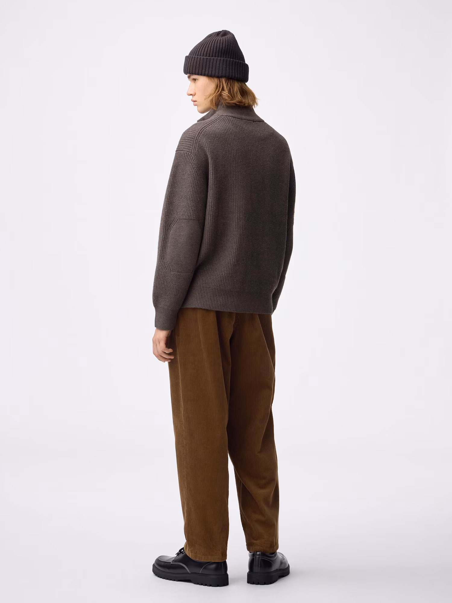無印良品の「紳士 コーデュロイイージーパンツ」は、綿100%の起毛素材を使用し、洗いをかけることでやわらかく仕上げたパンツです。オーガニックコットンならではの自然な質感と肌触りの良さが特長で、日常に取り入れやすい一本になっています。デザインはゆとりのあるややテーパードシルエットで、イージー仕様により快適なはき心地を実現しています。さらに前開き仕様を採用しているため、カジュアルにもきれいめにも合わせやすく、幅広いシーンで活躍します。
