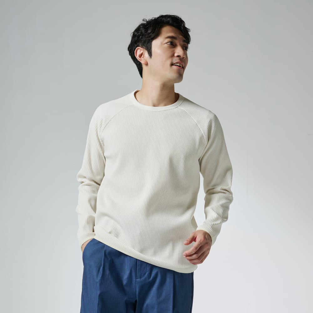 「ふんわりワッフルサーマル長袖クルーネック」