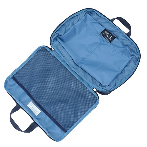 ダブルファスナーで圧縮できる構造により、衣類の使用後・使用前で分けて収納ができ、衣類スペースを40%~50%節約可能。また、撥水生地を使用しているため軽く汚れを拭き取れ、メッシュポケットや仕切りも豊富。スーツケース内でのぐちゃっとした荷崩れを防ぎます。サイズはおおよそ高さ25センチ×幅33センチ×マチ3.5~10センチ、重さ約450グラム(ショルダーベルト含む)で持ち運びやすく、外側にスーツケースのハンドル通しポケットが設けられており、キャリーバッグの上にセットも可能です。公式オンラインサイトのANAショッピング A-styleにて購入可能です。