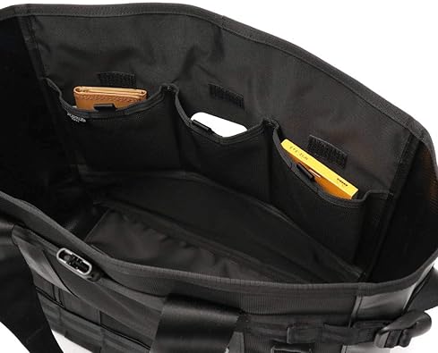 メインポケットには複数の小さなポケットが設けられており、小物を整理できます。前面にあるファスナー式のポケットは、スマホやノート、手帳など薄い物の収納に便利。Dリングや二重リングも付いています。そのため、パスケースやアクセサリーなどを取り付けて、自分好みにバッグを飾ることも楽しめるでしょう。
